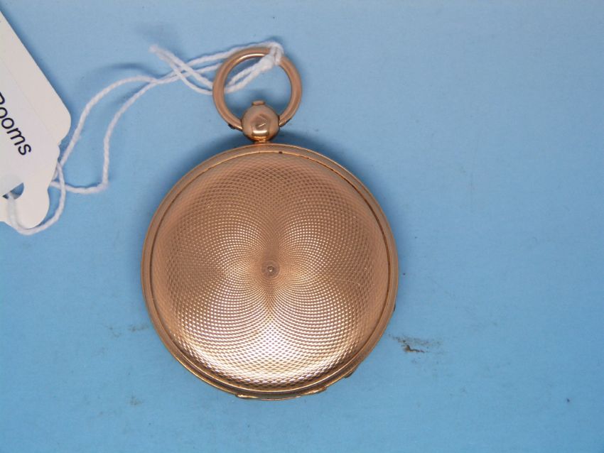 An 18kt yellow metal small pocket watch by Leroy of Paris with continental hallmarks, engine turned dial and back, contrasting chapter ring and silver dial. Key wind movement, c1860
