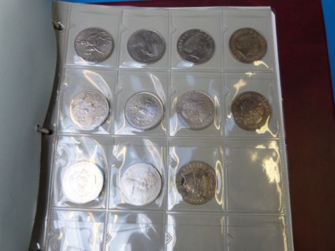A collection coin folder containing UK coinage, Victorian onwards, including silver 3d, George V half crowns and a quantity of modern £5 coins