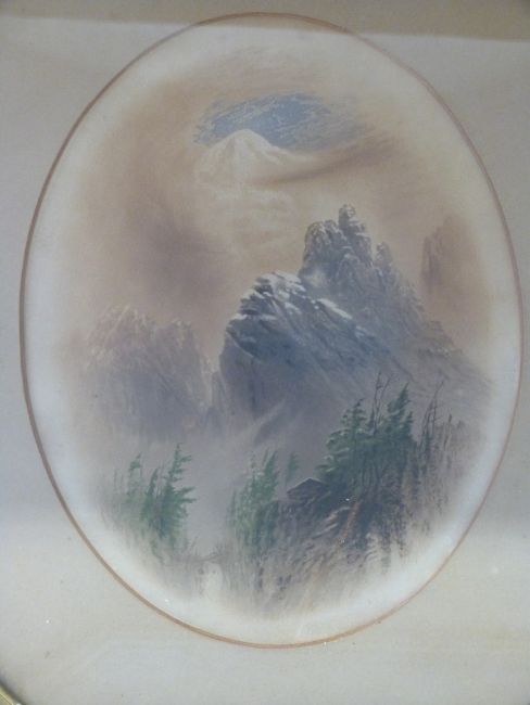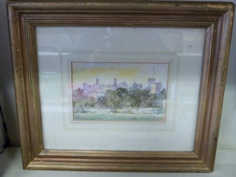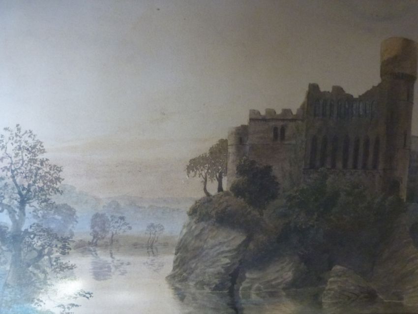 An oval picture of Gletscher Horn from above Interlaken, after Elijah Walton (29cm x 22cm) together with a watercolour of Arundel Castle (10cm x 14cm) by J Hammond Turner and a larger castle watercolour (32cm x 44cm)
