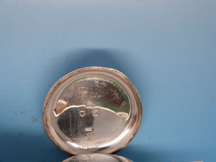 A silver London hallmarked half hunter gentleman's pocket watch, 1899, keyless movement signed E. French-Smith