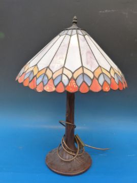 Art Nouveau coloured glass decorative table lamp and another in form of flowers with multi shades.