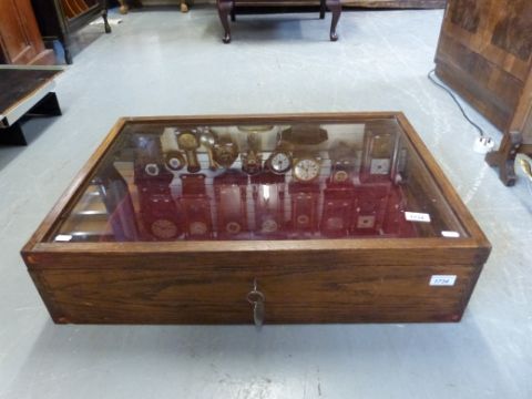 An oak table top display cabinet with lock (W72 x D51 x H18cm)