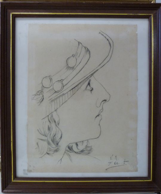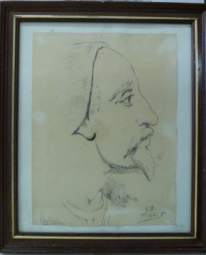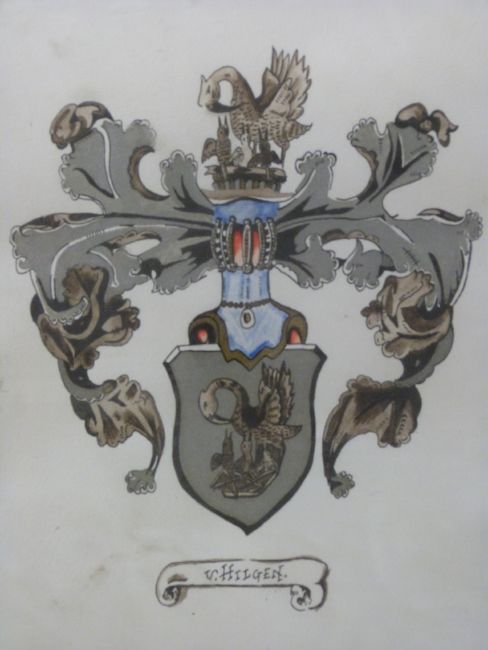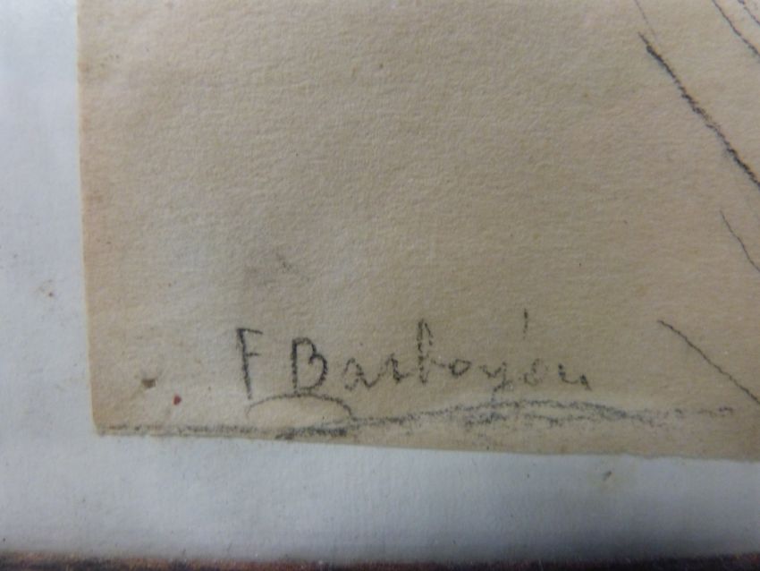 Three framed and glazed pencil drawings of F Barboyan etc indistinctly signed possibly F Clirnent (20cm x 26cm) together with an armorial watercolour V Hilgen (30cm x 24cm)