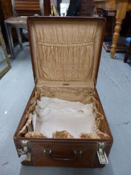 A Norris Luggage ladies leather case with P & O Oriental Steamship Co stickers