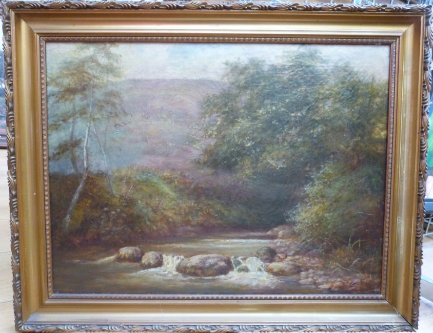 Frank Morris oil on canvas river scene, signed and dated 1916 lower left (44 x 59cm)