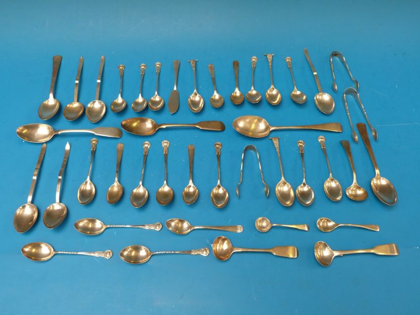 A quantity of hallmarked silver teaspoons and other cutlery, 440g, together with a pair of white metal teaspoons marked 800, 40g