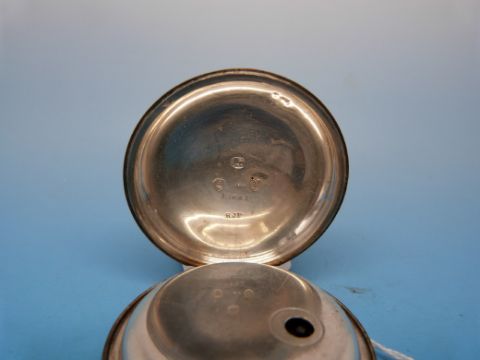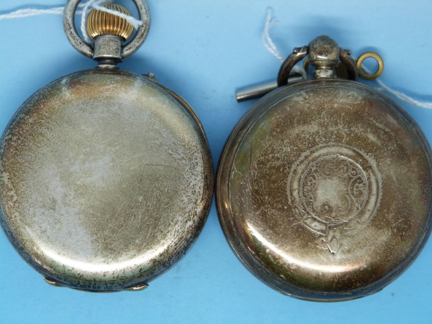 A silver cased gentleman's pocket watch with a silver chased face together with a continental white metal pocket watch (German hallmarks) engraved F.M.Moore Belfast & Dublin