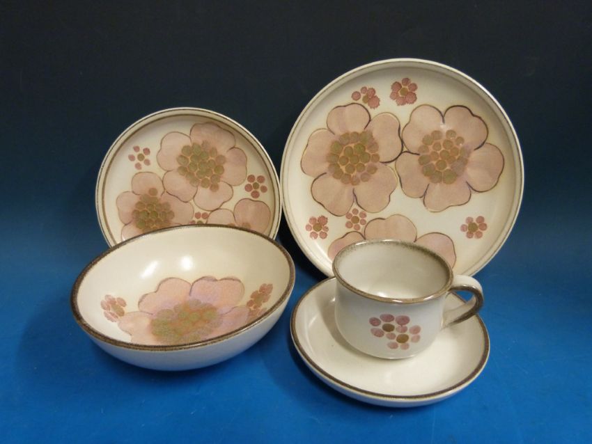A large collection of Denby "Gypsy" stoneware dinnerware including lidded casserole pots