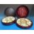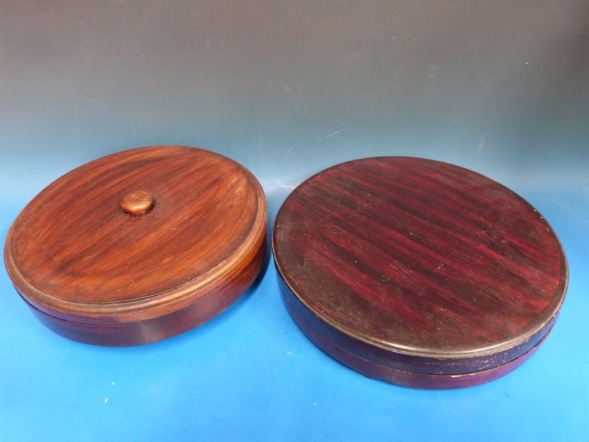 Two hors d'oeuvres hardwood Lazy Susans with segmented ceramic interiors