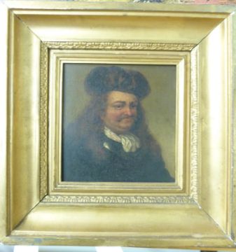 Follower of William Van Mieris portrait of a gentleman in cap with white cravat, period provenance verso, Lord Heytesbury, Lisbon 1828 with Christies paperwork circa 1980's/90's (12 x 11.5cm)