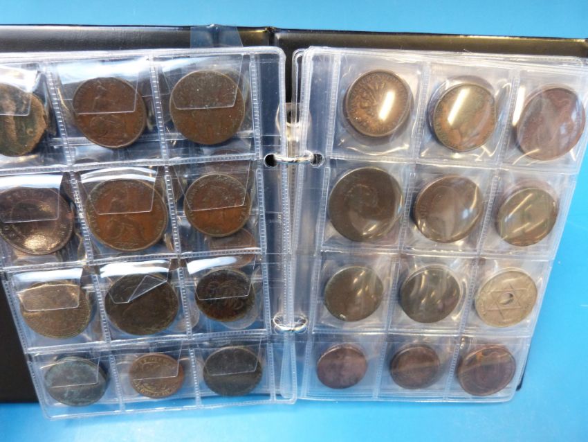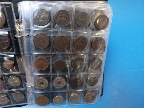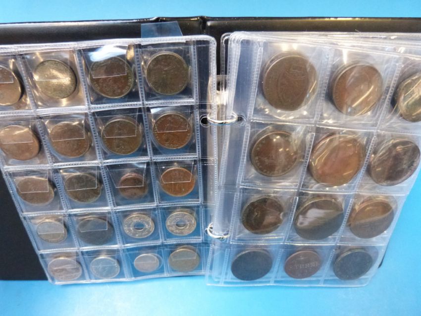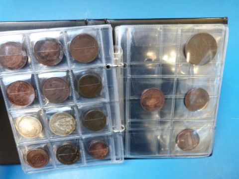 A booklet containing an amateur coin collection in the whole, hammered, Georgian, Victorian coins and foreign (Dutch Gilder)