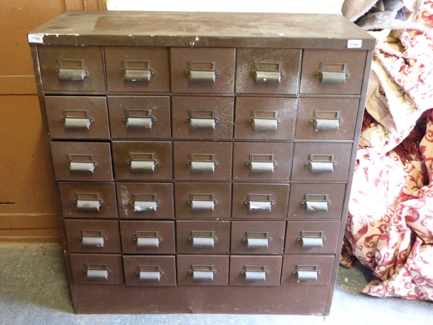 A 30-drawer metal engineer's or filing chest of metal drawers (width 96cm depth 42cm height 103cm)
