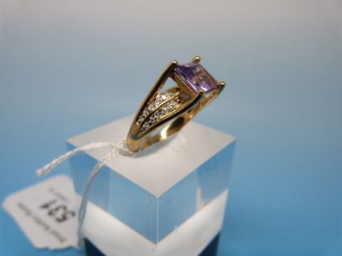 A 9ct gold ring set with an amethyst and diamonds (size M/N)