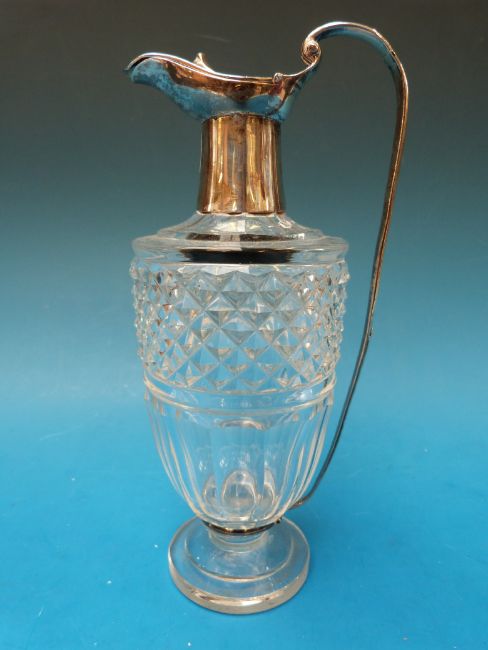 A Paul Storr Georgian hallmarked silver and cut glass bachelor's claret jug. London 1807, height 20cm