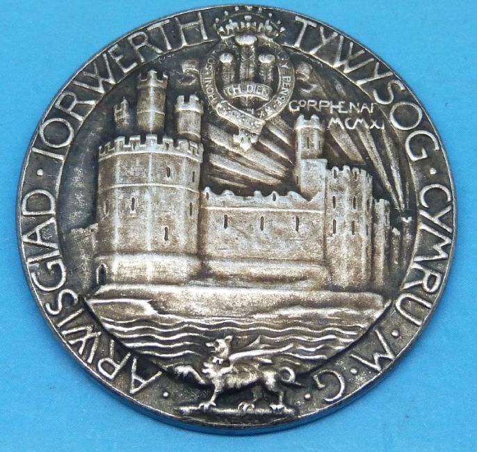 A white metal 1911 Edward Prince of Wales Caernarfon Castle investiture medal