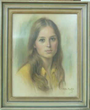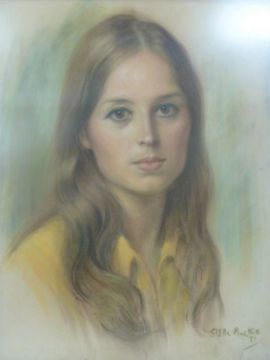 Stella Mackie pastel of a young girl signed to bottom right and dated 71 (46 x 36 cm)
