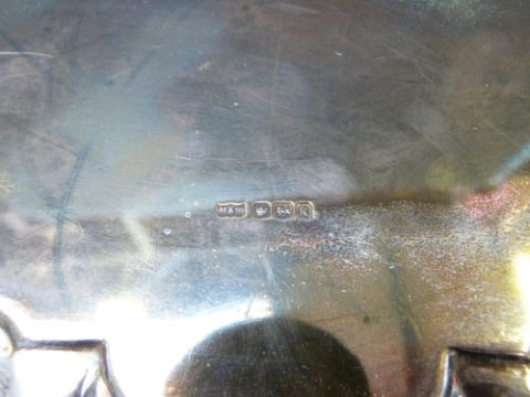 A large Mappin & Webb hallmarked silver salver with shaped edge raised on four feet, Sheffield 1927 (diameter 46cm, weight 2405g)