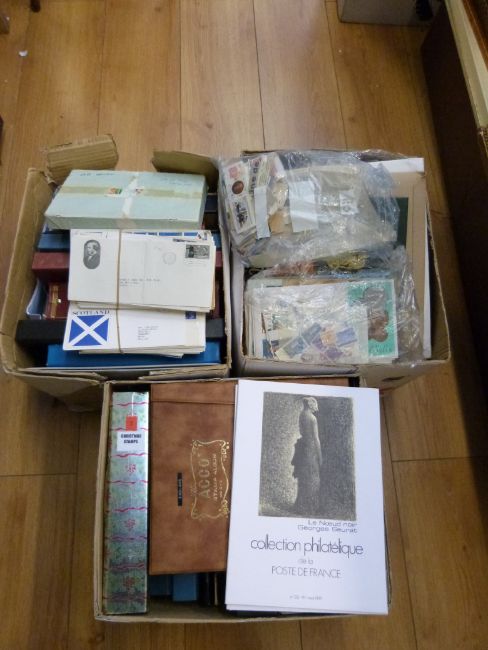 Three boxes containing a large quantity of stamps, albums and loose stamps