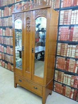 Two late C19th/early C20th satinwood wardrobes both with carved detail and drawers under. (Tallest 212cm x 110cm wide)