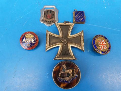 A German WW2 "Iron Cross" war medal together enamelled badges including "The Great War Comrades" etc and a miniature 'book' of views of Newbury