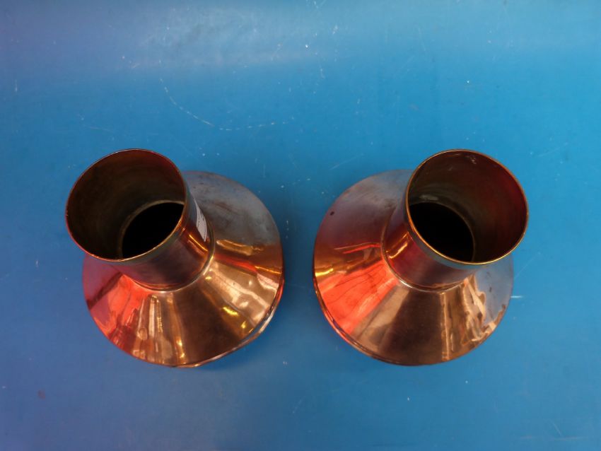 A pair of Arts and Crafts copper vases by Harry J. Pratt, Neston, Birmingham, impressed to base