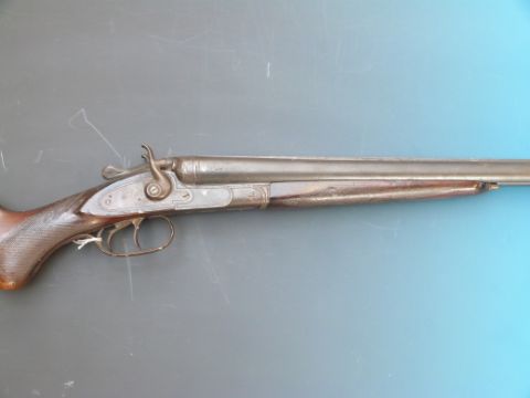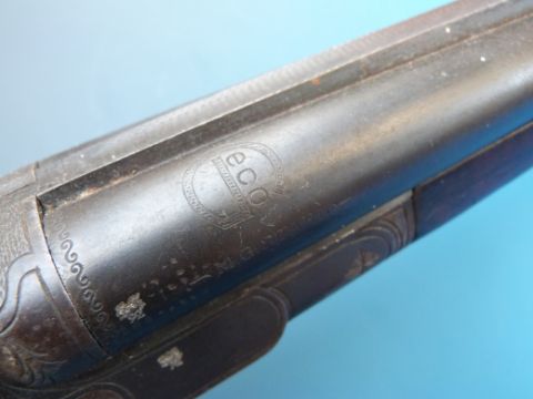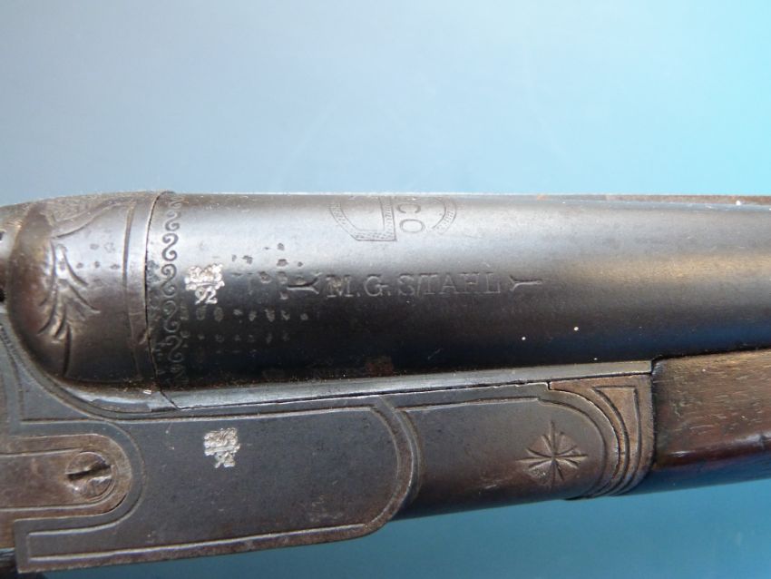 A deactivated double barrelled hammer action shotgun with MG Stahl and large G with eco inside stamped to barrels
