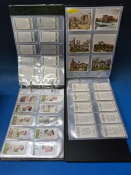 Six albums containing part sets of cigarette cards and silks including Famous Art, Heraldic, Godfrey Phillips, Sunripe, sporting, views of interest and postcard sized Beauties of Today etc
