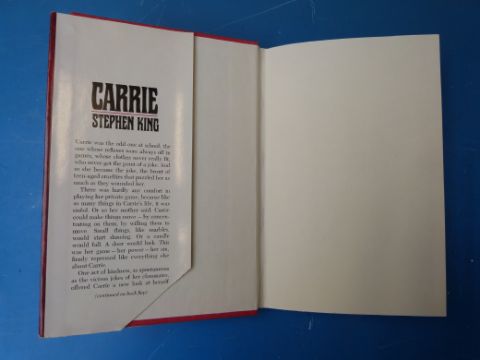 Stephen King "Carrie", Doubleday (1974) with red boards, black lettering to spine. Price clipped dust-wrapper vg / vg
