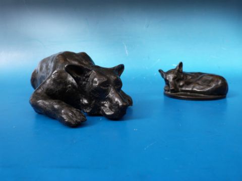 Two bronze coloured sculptures of German Shepherd dogs