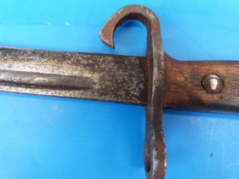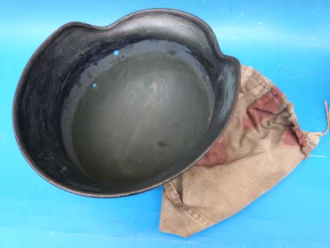 Two German helmets, one with SS and swastika emblems, together with a helmet cover with Nazi emblem 5-44 to inside and a WWI bayonet with three interlocking circles stamped to blade