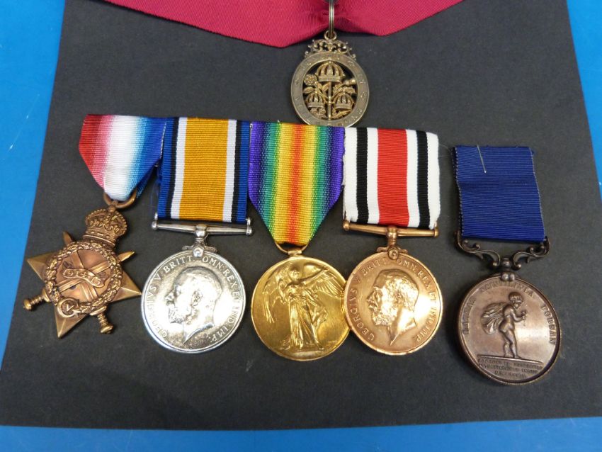 A medal group to Ft PAYR R B Hosking R N including 1914-15 star trio, Special Constabulary Medal, Royal Humane Society and Civil CB. Together with a quantity of paperwork/research on the recipient