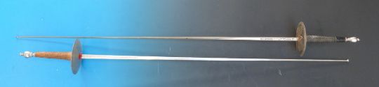 A pair of narrow bladed swords marked Toledo to the blade