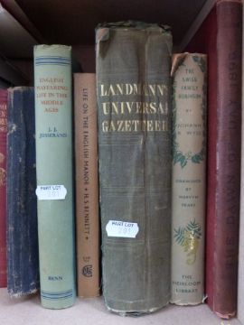 A sundry collection of titles including 'The Letters of Queen Victoria' (3 volumes), The Life and Explorations or Dr Livingstone, a Baedeker for 'The Rhine', English Wayfaring, Life in the Middle Ages and Haydon's dictionary of dates.