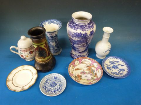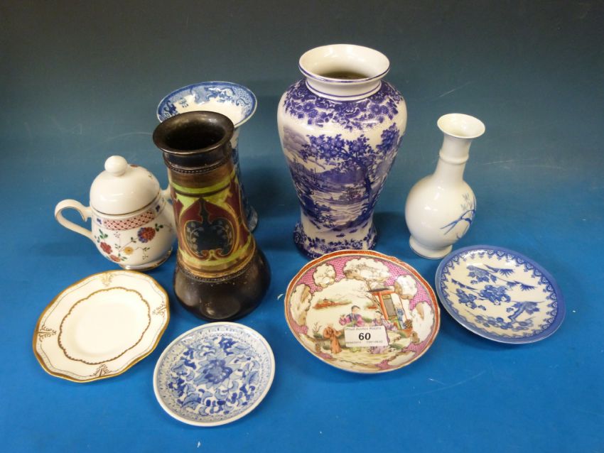 An 18thC Chinese saucer, Bretby vase, Masons vase with chinoiserie scene etc