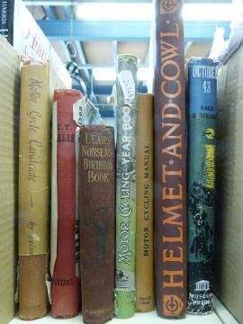 A selection of books including Motor-Cycling Year Book (1953), sundry books including Edward Lear's Nonsense Birthday Book, Helmet and Cowl