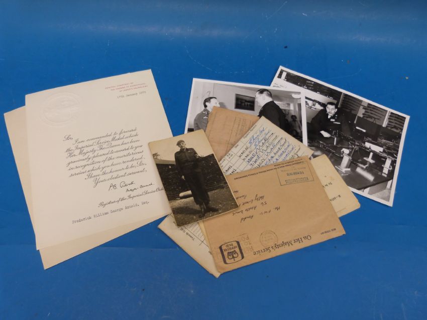 A WW2 and later group of eight including a cased Imperial Service Medal to Frederick William George Arnold with certificate dated 1978; King George VI medal with Minesweeping 1945 - 51 clasp to KX156126 F W Arnold STO 1 R N and Q E II General Service medal to RMV 202734 F W G Arnold MNE R M F V R. With associated photographs and paperwork