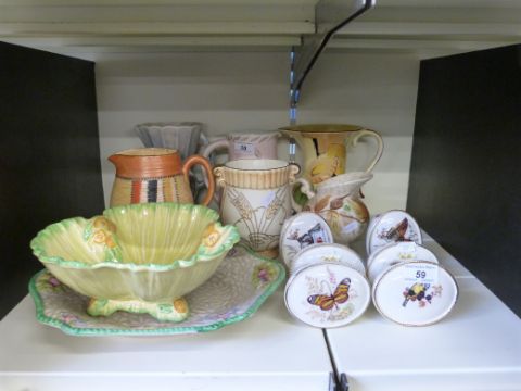 A collection of Art Deco ceramics including Myott, Crown Ducal jug and bowl etc