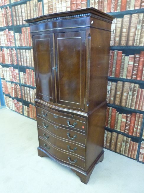A serpentine fronted cabinet over four graduated drawers with brush slide (H 154cm x W 72cm)