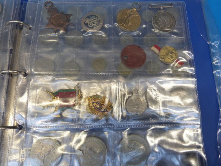 A mixed lot including WW1 medals and badge awarded to 89116 A SJT AV Larner, RA, together with an Ancient Order of Foresters jewel and an amateur coin collection