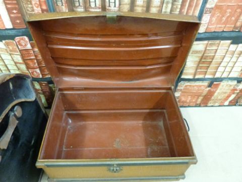 A dome-topped leather mounted travelling trunk together with a metal example