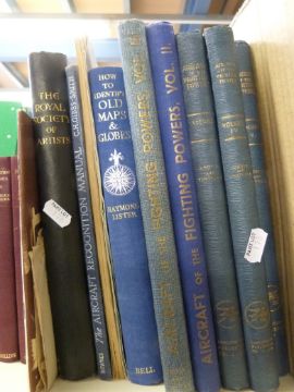 Mixed books including "Aircraft of the Fighting Powers", Bertrand Russell "Wisdom of the West" and a book on collecting maps and globes etc