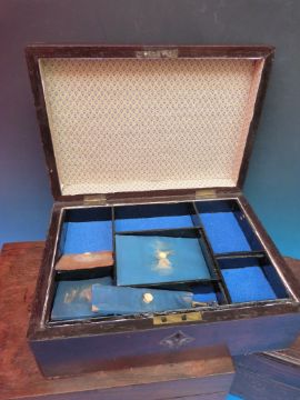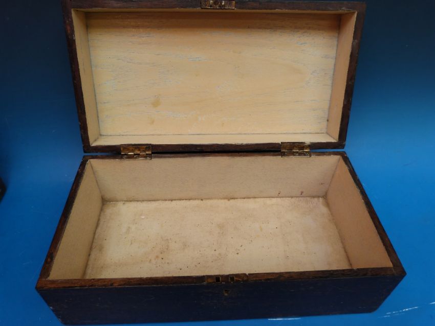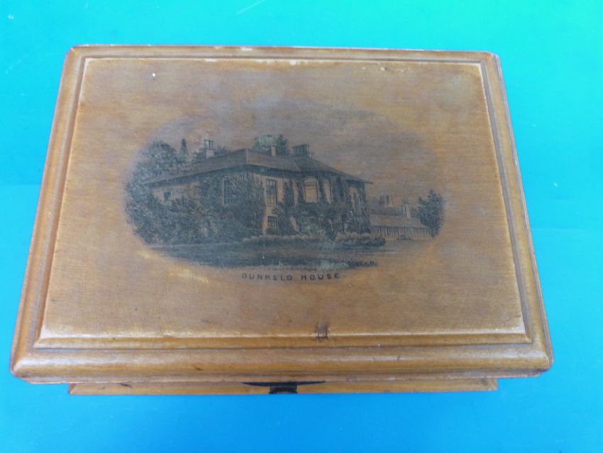 A collection of wooden boxes including mauchlinware Dunkeld House and Cathedral and a mother of pearl inlaid rosewood jewellery box etc
