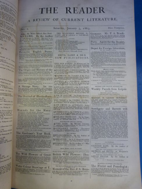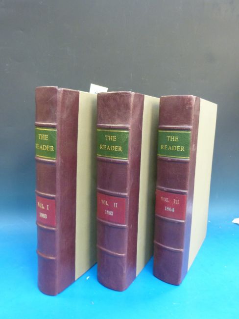 The Reader, Volume 1 (1863), Volume 2 (1863), Volume 3 (1864), quarter leather, raised spine
