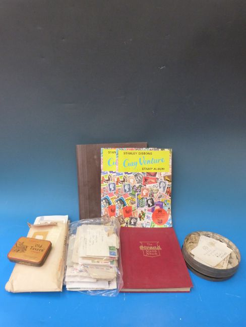 A box of stamp albums, loose stamps, covers and sundries