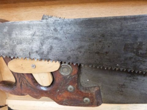A toolbox of vintage woodworking tools including a Stanley No 5 1/2 plane, Spear & Jackson saw etc
