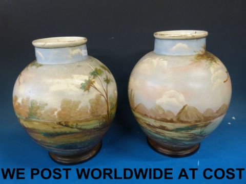 A pair of large 19thC / 20thC hand-painted German vases decorated with woodland flowers (30cm tall)