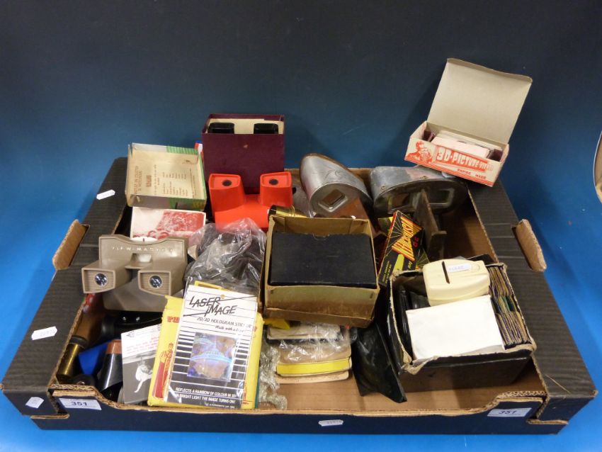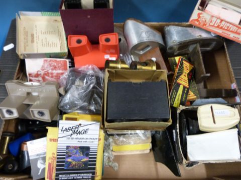 A quantity of View Master and other stereoscopic viewers and discs, microscopes etc