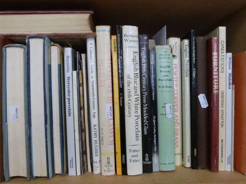 A selection of important reference books on Wedgwood, English Porcelain, Glass, Potters' Marks and general antiques/collecting together with a quantity of art books includes Smiles biography of Josiah Wedgwood