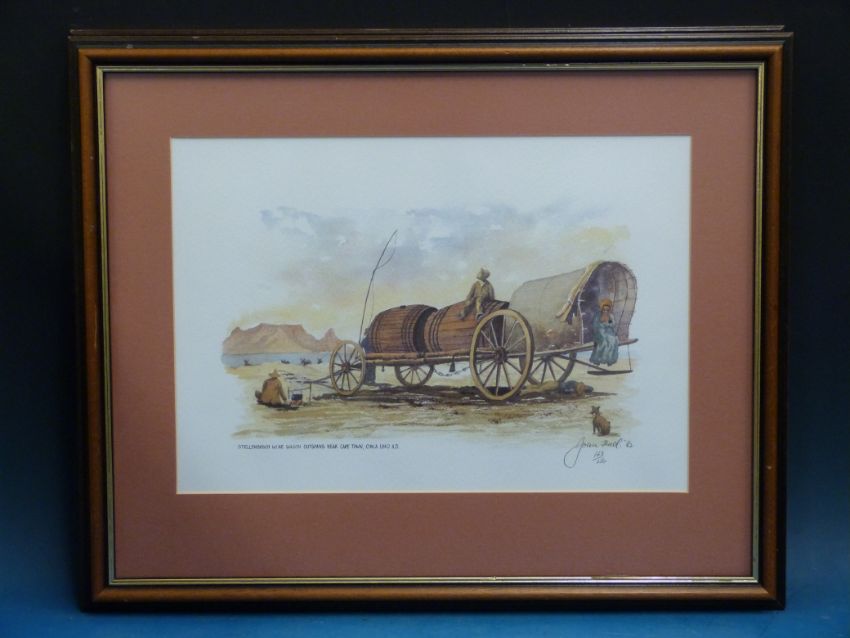 A set of four limited edition prints, all early South African wine making interest, signed indistinctly John Keell