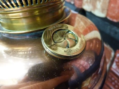 A wrought iron and copper Hinks patent standard lamp in the manner of Bensons, converted to electricity (157cm tall not extended max height extended over 2 metres)